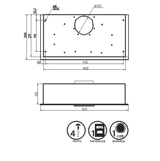 Витяжка кухонна ProfitM Берта №1 52см 700м3 Коричнева