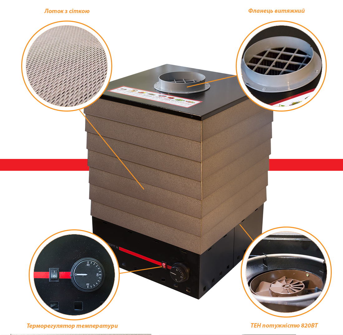 Електросушарка для фруктів і овочів ЭСП-01 820Вт на 35 літрів, чоргого кольору.Електросушарка від виробника «Профіт М» модель ЭСП-01 призначена для сушки продуктів, а саме: яблок, грибів, груш, ягід, сухарів, лікарських трав, а також м'яса і риби в домашніх умовах. Вона надійна, компактна та зручна у використанні. Незважаючі на свій розмір і компактність, електросушарка достатньо містка. В середині сушки розміщуються окрашені стійкою полімерною (порошковою) фарбою металеві лотки, під якими разташован блок з теном і вентилятором. Отвіри в лотках достатньо малі, що дозволяє сушити меленькі ягоды. Теплове випромінювання, що виділяється завдяки тену, долзволяє сушити при температурі від 30 до 90 градусів. При цьому продукты зберігають корисні вітаміни майже повністю. Завдяки металевій конструкціі, сушка не плавиться і не виділяе неприємних запахів у відмінності від пластикових моделей. |